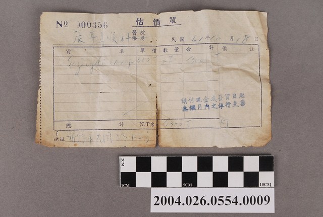 2004.026.0554.0009 致張耳鼻喉科醫院估價單