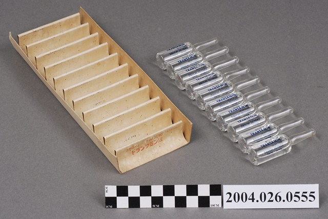 本物件為日本第一製藥株式會社出品TRANSAMIN注射液。共有2種物品,分別為紙盒和藥瓶。