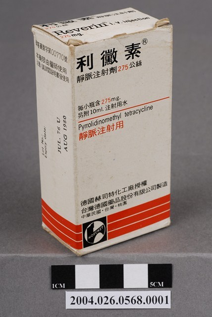 2004.026.0568.0001 臺灣德國藥品股份有限公司製造利黴素靜脈注射劑包裝紙盒