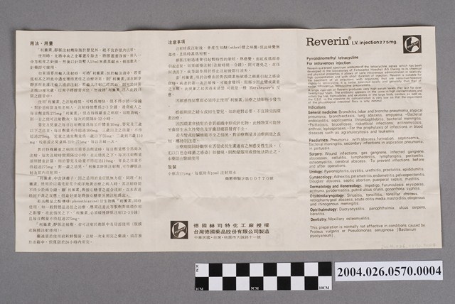 2004.026.0570 臺灣德國藥品股份有限公司製造利黴素靜脈注射劑