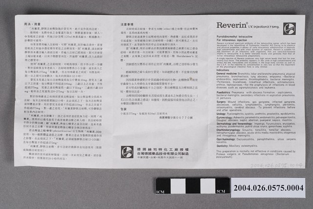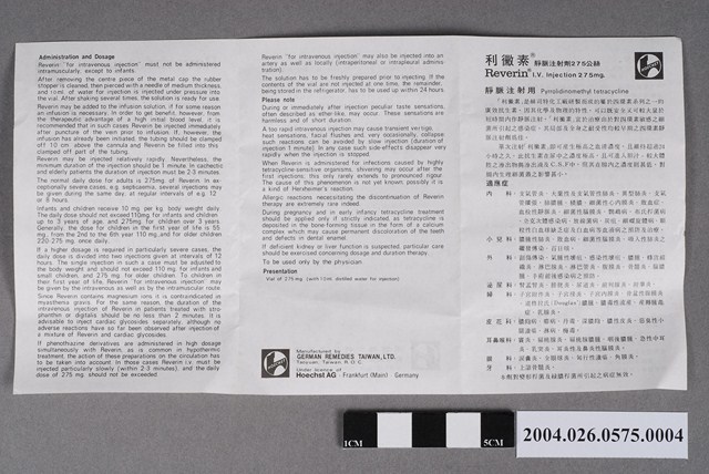 2004.026.0575.0004 臺灣德國藥品股份有限公司製造利黴素靜脈注射劑說明書