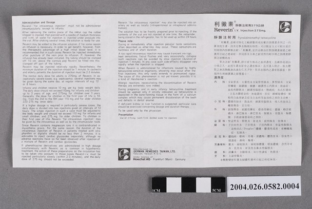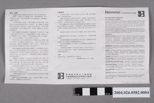 2004.026.0582.0004 臺灣德國藥品股份有限公司製造利黴素靜脈注射劑說明書