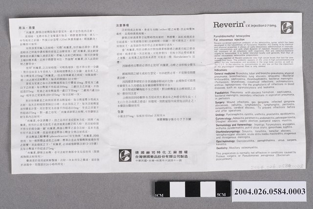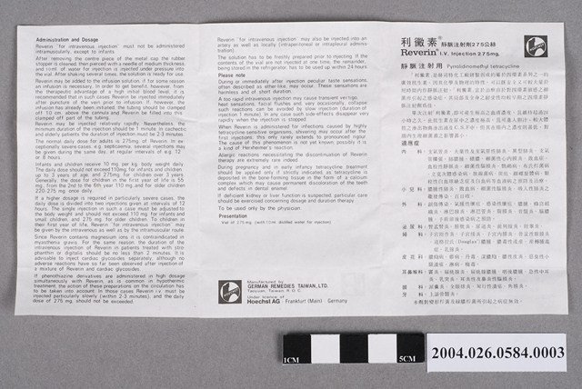 2004.026.0584.0003 臺灣德國藥品股份有限公司製造利黴素靜脈注射劑說明書