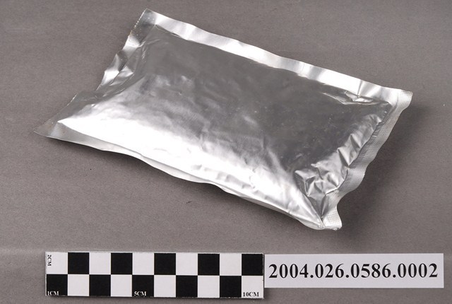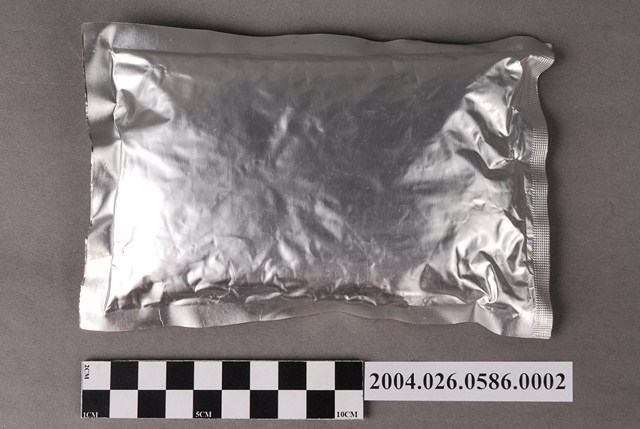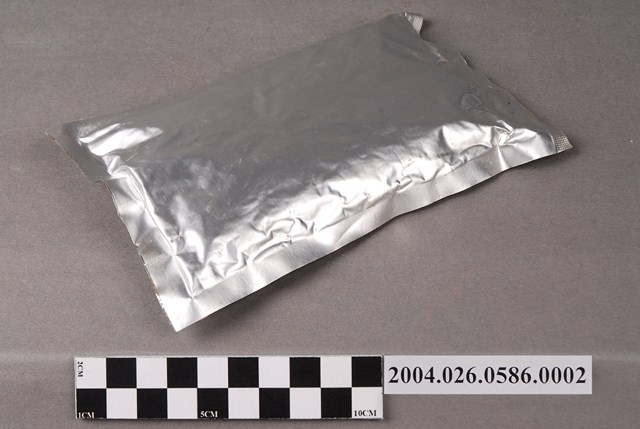 本物件為台灣輝瑞大藥廠股份有限公司銷售倍可喜膜衣錠之藥包。藥包外觀為不透明銀色,無字無圖,無法透視內部物品。