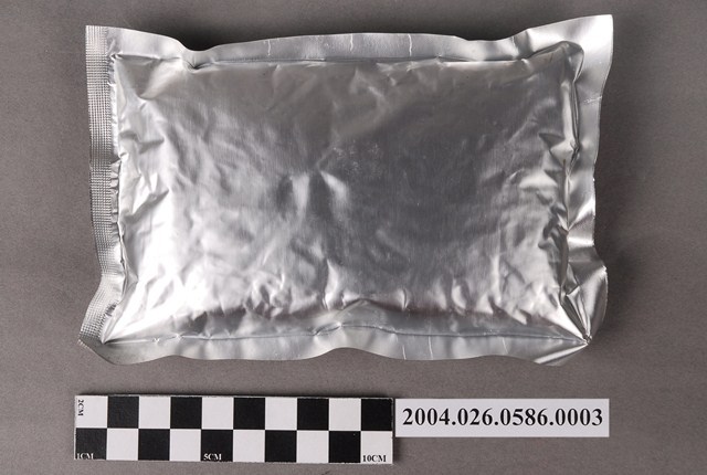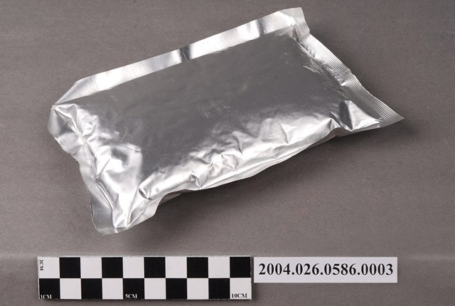本物件為台灣輝瑞大藥廠股份有限公司銷售倍可喜膜衣錠之藥包。藥包外觀為不透明銀色,無字無圖,無法透視內部物品。