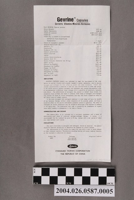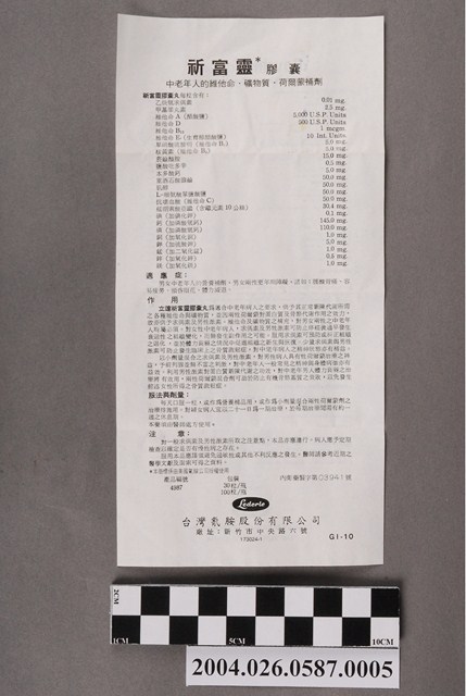 2004.026.0587.0005 臺灣氰胺股份有限公司製祈富靈膠囊說明書