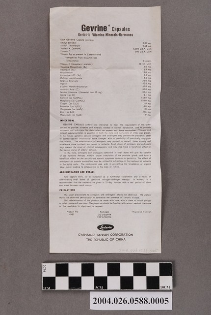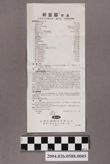 2004.026.0588.0005 臺灣氰胺股份有限公司製祈富靈膠囊說明書
