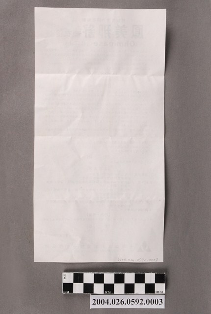 1. 本物件為台灣山之內製藥股份有限公司中壢工廠出品鳳美那舒糖衣錠說明書。說明書為單張紙,單面有字。說明書上印有藥品說明、成分分量、作用及特徵、效能、注意事項、用法用量等內容。