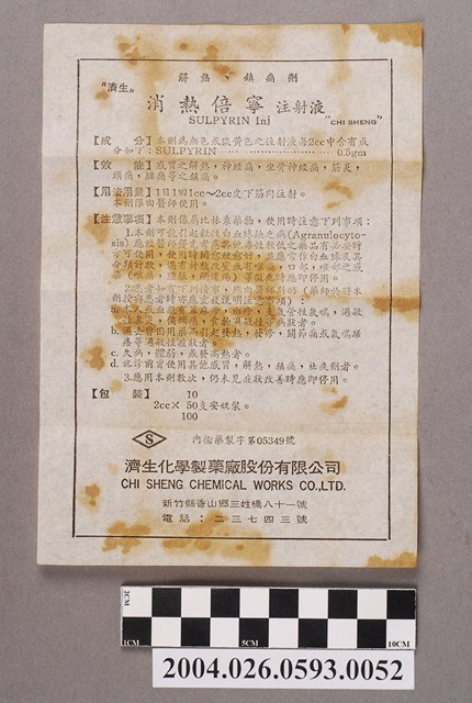 2004.026.0593.0052 濟生化學製藥廠股份有限公司出品消熱倍寧注射液說明書