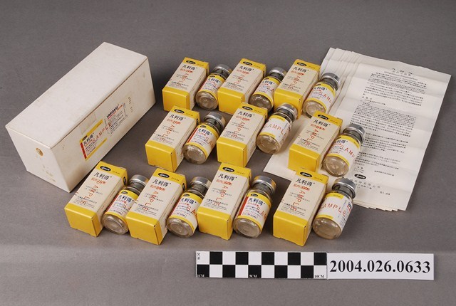 1. 本物件為臺灣氰胺股份有限公司出品凡利得肌肉注射劑。共有2種物品,分別為包裝外盒和注射液。