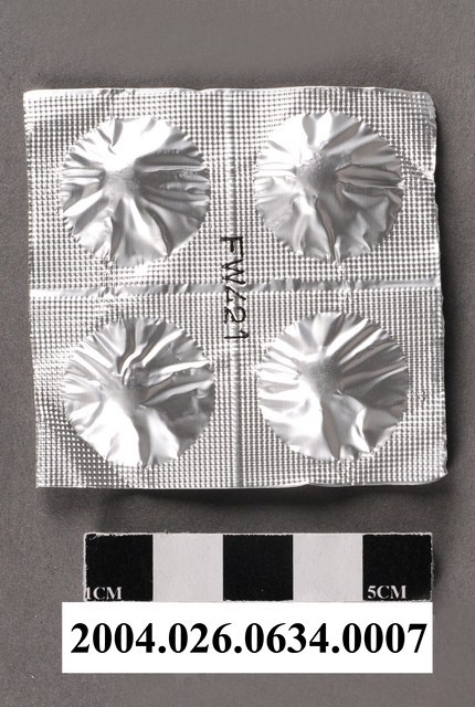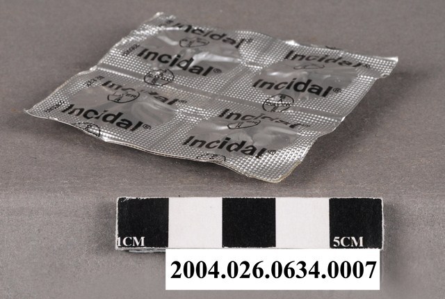 1. 本物件為德國Bayer製益舒達錠藥排。一排藥有4顆藥錠,外包裝為銀色,看不到藥錠顏色,包裝上印有商標和Incidal字樣等。