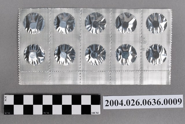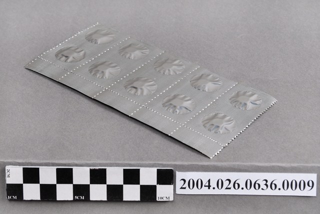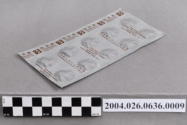 本物件為台灣德國藥品股份有限公司製造抗高血壓劑脫博難錠藥排。一排藥有10顆藥錠。藥排包裝為不透明銀色,其上印有脫博難、衛署藥製字第00215號、Terbolan等字樣。
