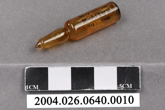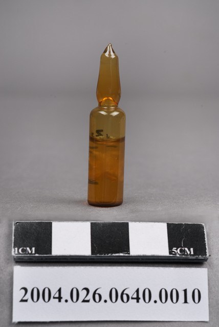 1.本物件為台灣武田藥品工業股份有限公司出品加體膚N注射液之藥瓶。藥瓶為一體成形,透明茶色。瓶身印有KATIV-N、Vitamin K1、10mg、1cc等字樣。