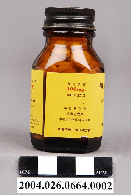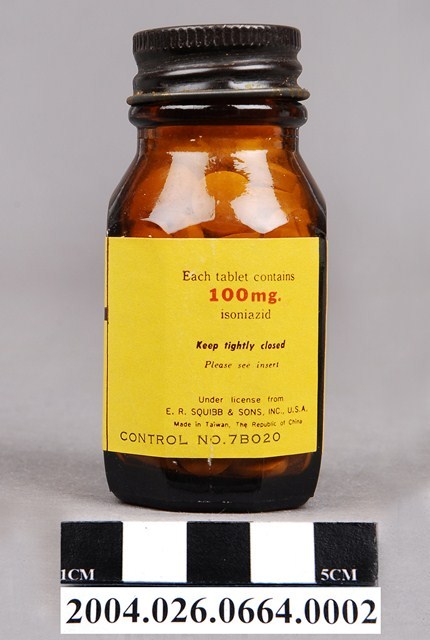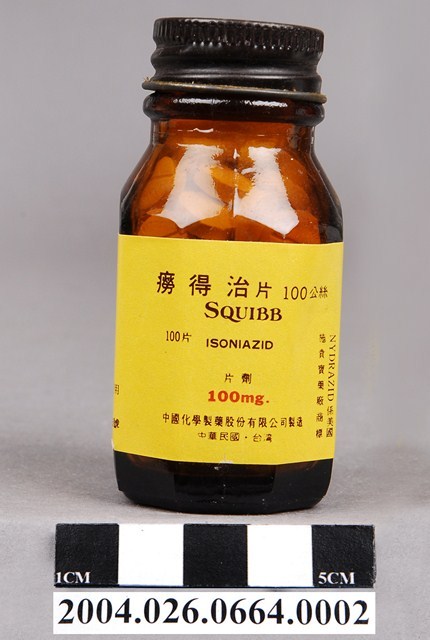 2.根據衛生福利部食品藥物管理署藥物許可證登記所示,此藥適應症:結核病。必治妥(Bristol-Myers)與施貴寶(Squibb)於西元1989年合併,因此此藥在此之前生產,另,衛署藥製字第00023號,應為西元1971-2013年許可字號的產物。