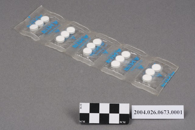 2.根據衛生福利部食品藥物管理署藥物許可證登記所示,此藥適應症:胃痛、胃痙攣、胃炎、胃酸過多症、胃潰瘍。西元2005年台灣山之內製藥股份有限公司與台灣藤澤藥品工業股份有限公司合併成台灣安斯泰來製藥股份有限公司。經查此藥許可字號有效期限為西元1970-1987年,故其為此時期產物。