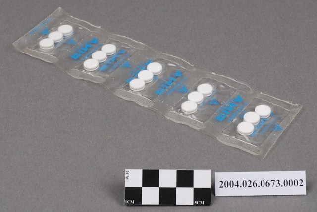 2.根據衛生福利部食品藥物管理署藥物許可證登記所示,此藥適應症:胃痛、胃痙攣、胃炎、胃酸過多症、胃潰瘍。西元2005年台灣山之內製藥股份有限公司與台灣藤澤藥品工業股份有限公司合併成台灣安斯泰來製藥股份有限公司。經查此藥許可字號有效期限為西元1970-1987年,故其為此時期產物。