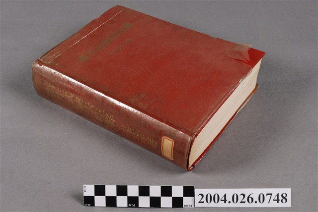 本物件為日本藥學會編《衛生試驗法注解》,封面封底為紅色精裝,封面以燙金字體印上「衛生試驗法注解 日本藥學會編」字樣,內文以日文編寫各式衛生檢驗方法及操作方式。