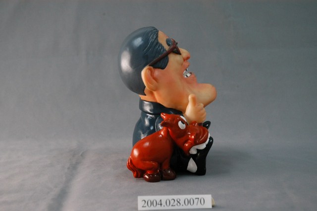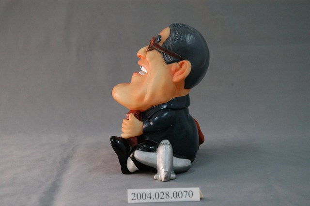 1.本件為1996年中華民國第九任總統副總統選舉時,2號候選人李登輝、連戰所推出的選舉人物娃娃存錢筒,娃娃造型上將李登輝下巴長的個人特質卡通化,左伴飛機、右有小狗,右手豎起大姆指,做起「讚」的姿勢,塑造出親民、詼諧的形象。中間刻有「經營大台幣、建立新中元、國民銀行、百年老店」等字。
