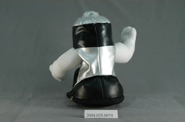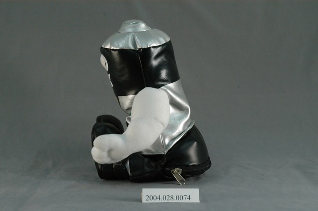 1.本物件是勁量小子造型的布娃娃。勁量小子設計形象是透過勁力不歇的能量和表現,代表電池的效能和持久度精神。勁量小子娃娃是電池的擬人造型;外觀有勁量電池的銀、黑、白配色,胸前有白字「Energizer®」;娃娃呈坐姿,雙腳平放,雙手1上1下如跑步揮動般;娃娃背面底部有1黑色拉鍊可打開。