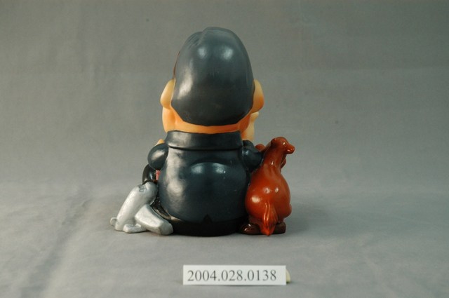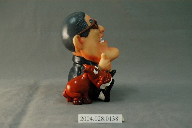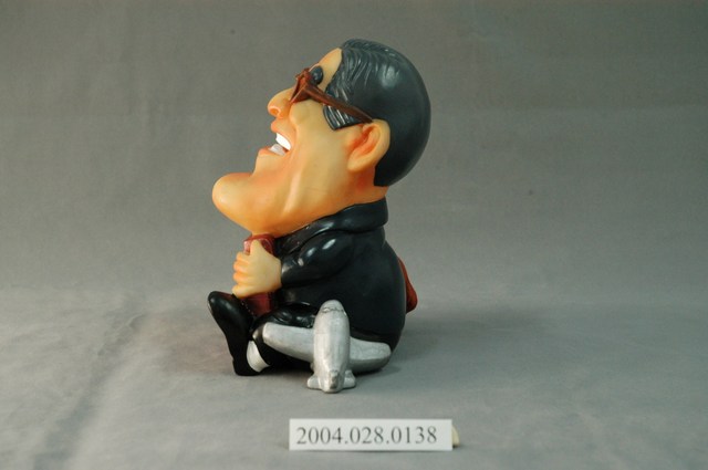 1.本件為1996年中華民國第九任總統副總統選舉時,2號候選人李登輝、連戰所推出的選舉人物娃娃存錢筒,娃娃造型上將李登輝下巴長的個人特質卡通化,左伴飛機、右有小狗,右手豎起大姆指,做起「讚」的姿勢,塑造出親民、詼諧的形象。中間刻有「經營大台幣、建立新中元、國民銀行、百年老店」等字。