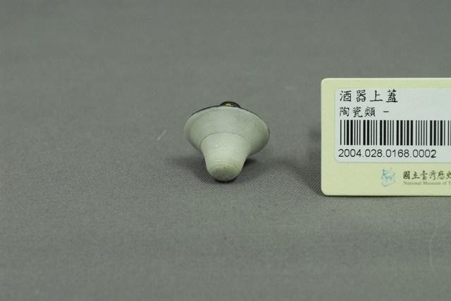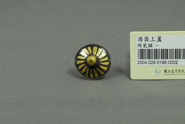 1.本物件為九谷燒酒器上蓋,型製約為倒三角形,並有一凸起便於拿取。這個上蓋長大約2.5公分大小,高約2.3公分,主體以金色和黑色為主,與酒器顏色相合,屬陶瓷製。