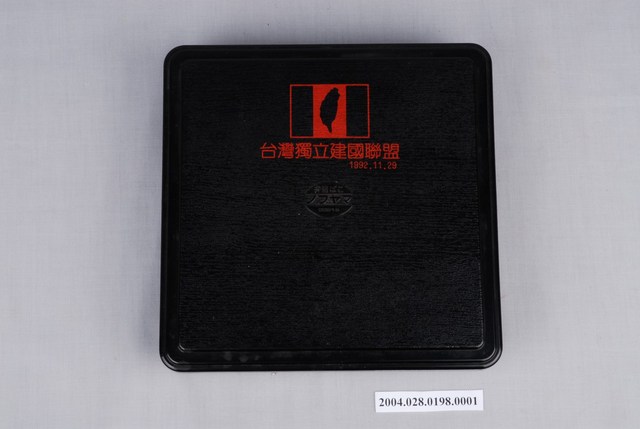 此為一黑色的塑膠質便當盒,盒子盒蓋印有一「臺灣獨立建國聯盟」旗幟的樣式,並印有「臺灣獨立建國聯盟」以及「1992.11.29」的字樣。 此物件提到的「臺灣獨立建國聯盟」於1987年成立,是一個以推動臺灣脫離中華民國自主獨立為目標的政治組織,「臺灣獨立建國聯盟」的前身「臺灣獨立聯盟」,為1970年由日本的「臺灣青年獨立聯盟」、加拿大的「臺灣人權委員會」、美國的「全美臺灣獨立聯盟」、歐洲的「全歐臺灣獨立聯盟」共同創辦。「臺灣獨立聯盟」成立後的各種活動皆以臺獨為訴求,其中有1970年的「刺蔣事件」、1969到1971年的「聯合國遊說與示威」、1976年的「王幸男郵包爆炸案」。之後在1987年更名為「臺灣獨立建國聯盟」,並試圖突破國民黨政府的限制返回臺灣,在1992年,在一系列人物偷渡返臺遭當局逮捕後,民間發出廢除「和平內亂罪」的訴求,促使政府做出讓步。進而,臺灣獨立建國聯盟在1992年6月27日將總部遷回臺灣。(陳銘成。2000:10-88。) 在臺灣社會,關於「臺灣獨立」最早的具體事件為1947年發生的「815臺獨案」。在日本戰敗的背景下,一批臺灣仕紳與日本軍官共同研擬了「臺灣自治」方案,但遭總督安藤利吉反對,而後不了了之(陳儀深,2010。140-141)。二二八事件後,廖文毅、史明、王育德、黃昭堂等人在國外展開臺獨運動,並在多國建立臺獨組織。1960至1970年代,臺灣社會發生若干臺獨事件,其中彭明敏師生於1964年所發起的〈臺灣自救運動宣言〉最具代表性(陳儀深,2010。149-152)。解嚴前後,在蔡有全、許曹德、鄭南榕等人士的推動下,「臺獨」在臺灣社會逐漸受人接受。