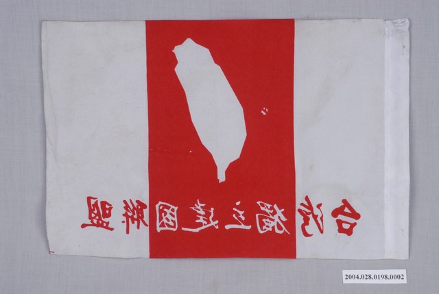 此為一布質的旗幟,旗幟以紅白色調構成,旗幟中央印有臺灣、澎湖列島及綠島的地圖圖樣,下面則寫有「台灣獨立建國聯盟」的字樣。 此物件提到的「臺灣獨立建國聯盟」於1987年成立,是一個以推動臺灣脫離中華民國自主獨立為目標的政治組織,「臺灣獨立建國聯盟」的前身「臺灣獨立聯盟」,為1970年由日本的「臺灣青年獨立聯盟」、加拿大的「臺灣人權委員會」、美國的「全美臺灣獨立聯盟」、歐洲的「全歐臺灣獨立聯盟」共同創辦。「臺灣獨立聯盟」成立後的各種活動皆以臺獨為訴求,其中有1970年的「刺蔣事件」、1969到1971年的「聯合國遊說與示威」、1976年的「王幸男郵包爆炸案」。之後在1987年更名為「臺灣獨立建國聯盟」,並試圖突破國民黨政府的限制返回臺灣,在1992年,在一系列人物偷渡返臺遭當局逮捕後,民間發出廢除「和平內亂罪」的訴求,促使政府做出讓步。進而,臺灣獨立建國聯盟在1992年6月27日將總部遷回臺灣。(陳銘成。2000:10-88。) 在臺灣社會,關於「臺灣獨立」最早的具體事件為1947年發生的「815臺獨案」。在日本戰敗的背景下,一批臺灣仕紳與日本軍官共同研擬了「臺灣自治」方案,但遭總督安藤利吉反對,而後不了了之(陳儀深,2010。140-141)。二二八事件後,廖文毅、史明、王育德、黃昭堂等人在國外展開臺獨運動,並在多國建立臺獨組織。1960至1970年代,臺灣社會發生若干臺獨事件,其中彭明敏師生於1964年所發起的〈臺灣自救運動宣言〉最具代表性(陳儀深,2010。149-152)。解嚴前後,在蔡有全、許曹德、鄭南榕等人士的推動下,「臺獨」在臺灣社會逐漸受人接受。