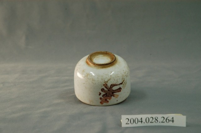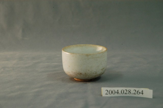 1.本文物為壽字小瓷杯,這個杯子大約7.2公分大小,高約5公分,除了杯子本身之外,並未附有茶杯蓋,杯身僅有大大的「壽」字,且無任何花紋。整體瓷杯屬於敞口短圈足式,小瓷杯本身保存良好,但有髒污與泛黃跡象,屬白瓷。