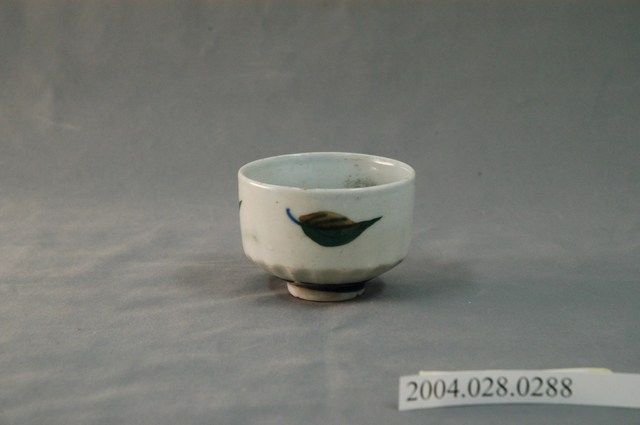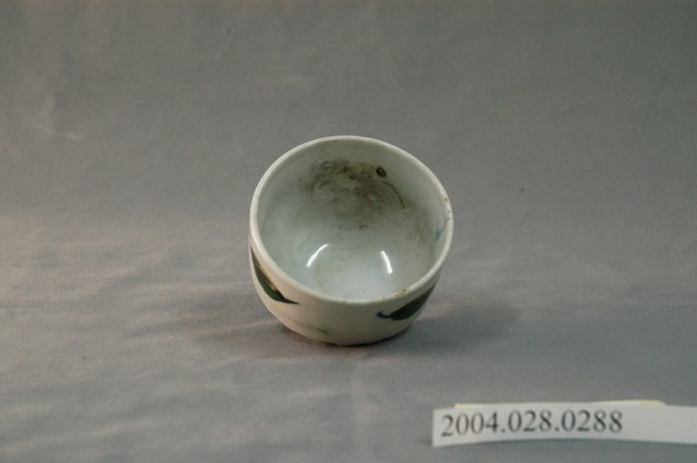 1.本文物為草屯鎮長洪錫恩贈農民節紀念小瓷杯,這個杯子大約7.3公分大小,高5.2公分,除了杯子本身之外,並未附有茶杯蓋,杯身有紅文字「祝民國五十年農民節 紀念 草屯鎮長洪錫恩贈」,並有綠葉圖樣。整體瓷杯屬於敞口短圈足式,小瓷杯本身保存良好,以白瓷為基底,有些微髒污與破損。