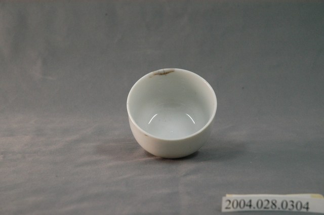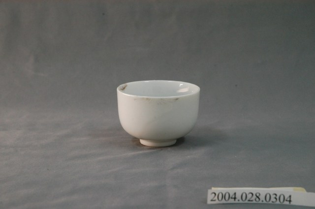 1.本物件為日式花紋小瓷杯,這個杯子大約7.4公分大小,高5公分,除了杯子本身之外,並無附有茶杯蓋,杯身上僅有一些日式花繪,這一個中心為樹葉。整體瓷杯屬於敞口短圈足式。小瓷杯型制保存良好,以白瓷為基底,有些微髒污與破損。
