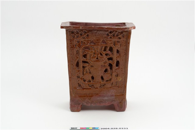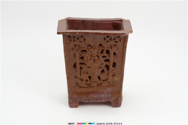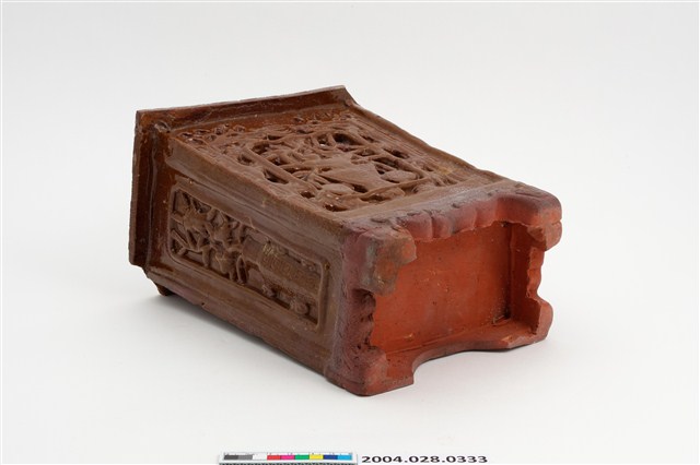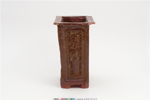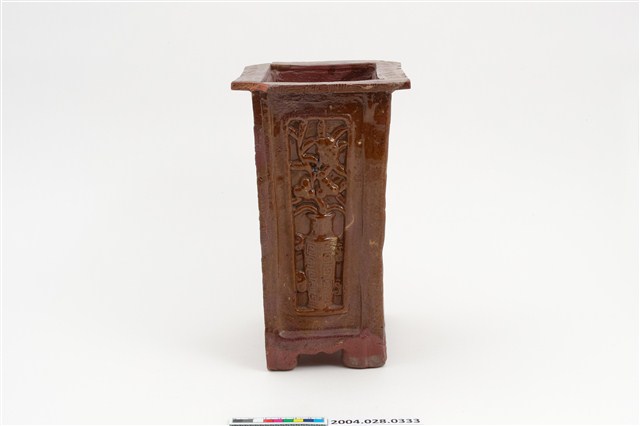 2004.028.0333 磚燒方形盤長花瓶紋香筒