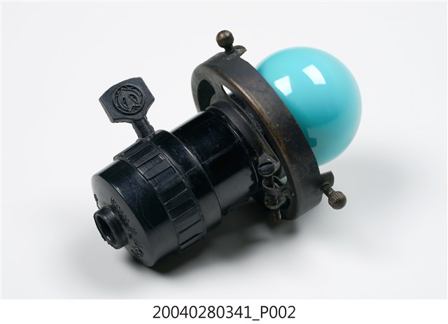 1.本件大祥牌電燈組,可分為燈泡與電燈座2部件,燈泡為白熾燈,又稱鎢絲燈。為一種利用電阻將鎢絲加熱至白熾,用來發光的燈。外型呈玻璃圓球狀,內面呈孔雀石綠色。電燈座以黑色塑膠製作,頂端圓孔用來接合燈泡,外側作金屬圓環形出沿,可外加燈罩,燈座下方帶有長方形板狀旋鈕,為電燈之開關裝置。2.臺灣早期提供油燈的原料,為花生油、菜籽油等植物油,清末之後逐漸以石油提煉的礦物油煤油取代。自清代到日治時期,民生照明仍是以煤油燈為主,也有利用電土加水,產生乙炔燃燒的電土燈。電燈於日治前半期多為官方、商店、旅館使用,一般民眾大都使用煤油燈。於日治後期,隨著供電與電網的普及,電燈照明用具逐漸走入日常生活中。