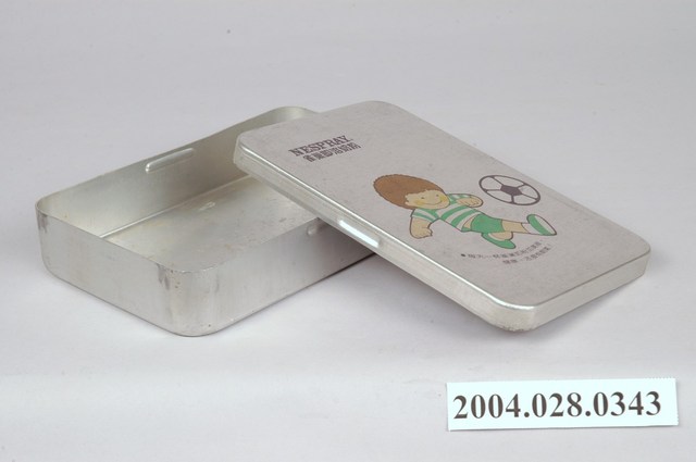 1.臺灣雀巢公司搭配奶粉產品所贈送的鋁製長方盒。該盒整體相當平整,觸感滑順好握持,盒蓋上印有產品名稱與行銷標語和卡通圖案。許多食品公司為了增加銷售量,會在商品上搭配獨家專利的贈品以提升買氣,這樣的行銷手法相當具有吸引力,時至今日仍可常見,甚至演變成發行系列贈品而刺激消費的現象。 2.該贈品盒除了可作為便當盒之外,也可用來作為收納盒,用途相當多種。