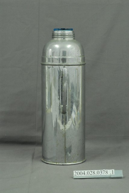 2.保溫瓶是在1892年,由英國化學家、物理學家詹姆斯‧杜瓦所發明的,其根據熱傳遞的原理而製成,總共設計了三個能阻隔熱能傳遞的機制,第一個就是真空夾層的外殼、第二個是在夾層的層壁上鍍銀,第三個就是以絕熱材質做的瓶蓋,三種設計皆能降低能量以傳導方式的流失。臺灣最常見的應是膳魔師、象印跟虎牌三大品牌,膳魔師於1904年建立,為美國製、象印於1918年建立,為日本製、而虎牌則於1923年建立,也為日本製。日治時期,受到日本政府影響,保溫瓶前期皆由日本進口。1930年,臺灣開始推展工業化,物資主要從軍需出發,1937年開始,為維持社會安定,民生工業自給率的提升成為政策之一,同時因為戰爭時期,船舶多被徵用,影響商品進口,臺灣開始展開進口替代,像是石灰、電池、皮、漆器等物,皆由臺灣本地製造,保溫瓶也在此時期改為臺灣製造。