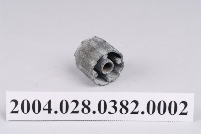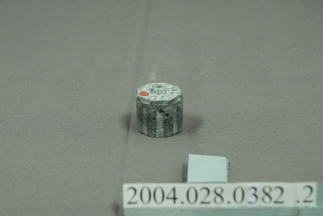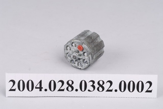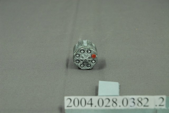 本物件為彈匣,此種轉輪手槍之彈匣又有「彈巢」之稱。本物件已生鏽,一次可填入八發子彈,其中一孔有紅色塑膠,應為連結八發子彈的塑膠模型。