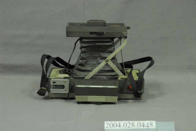 1.本件藏品是拍立得420型相機,為美國製,製造商寶麗萊(Polaroid)1971年生產,由德國蔡司設計,鏡頭為雙片式塑膠製,光圈為f/8.8, f/12.5, f/17.5, f/25, f/35, f/42,快門速度為 1/1200 - 10 秒。 1971 當時售價 $59.95美元。 採蛇腹形式伸縮,當時可使用100系列的底片為Polaroid Type 108 Speed 75 彩色底片或 Type 107 Speed 2000 黑白底片,現在皆停產,後來可用富士所生產的FP-100c,FP-100b, FP-3000b替代,皆於2018年停產。具備自動曝光功能,配有平行視差對焦矯正取景器。