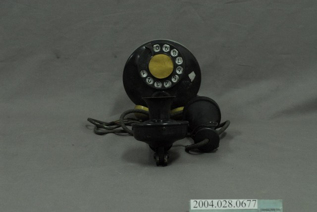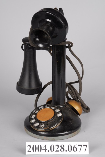 1.本件為燭臺型撥號式電話機,與一般電鈴與機身分開的設計不同,該電話機是電鈴與機身合一。撥號式電話機大概在1917年就已經商用化,其原理為使用撥號盤撥1到0的號碼時,即送出代表該號碼的一串斷續脈衝(Pulse)信號,透過機房的自動交換機接到對方的號碼。
