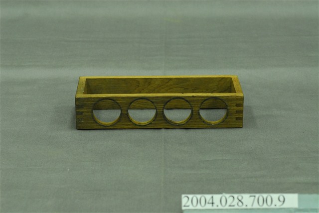 1.本物件為OLYMPUS株式會社顯微鏡木架。顯微鏡木箱內用品,供放置鏡頭之用,其上有4個孔。
