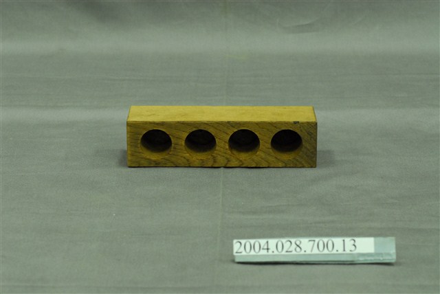 1.本物件為OLYMPUS株式會社顯微鏡木架。顯微鏡木箱內用品,供放置倍鏡組之用,其上有4個孔。