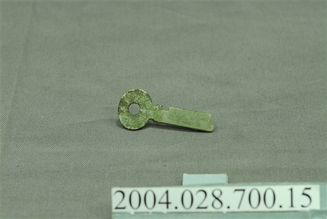 1.本物件為OLYMPUS株式會社顯微鏡木箱之鑰匙。顯微鏡木箱用品,開關木箱之用。金屬材質,鑰匙頂部有一個洞。