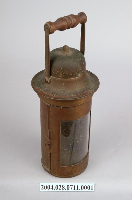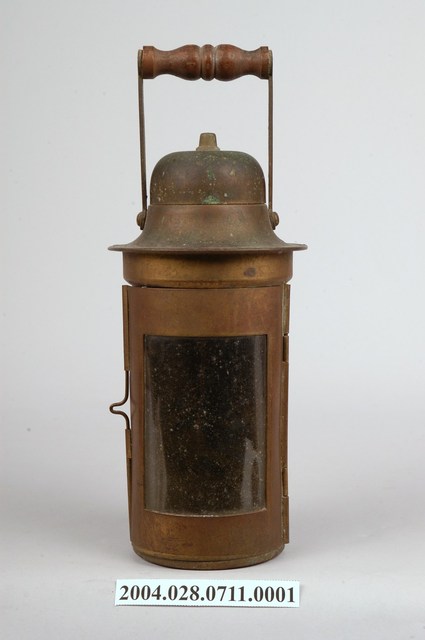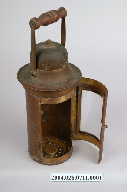 1本件手提燈罩為 Sherwood Ltd Linley製銅質手提煤油燈部件之1,通身以用銅合金製作,呈紅銅色澤。手提燈罩作中空圓柱形,上蓋鐘形頂蓋,其邊緣略帶出沿,兩側固定ㄇ字形提樑式手把,握柄處為木質圓棒。燈罩兼具燈座功能,正面開直式長方形絞鍊門,並裝設有透明玻璃透光,另以銅棒製作門榫開關。燈罩底面等距排列成環形的透氣圓孔,可幫助空氣對流,另外於四端角處帶有突起圓球角做底足支撐。該煤油燈具有防風效果,可於夜間戶外使用,頂端帶有把手方便提拿照明。2.臺灣在電器燈具尚未普及之前,多使用煤油燈具作為夜間室內照明。煤油在臺灣又稱臭油或番仔油,為當時最為經濟的照明燃料,普遍可在雜貨店購買,其缺點為燃燒時產生的黑煙與臭味。