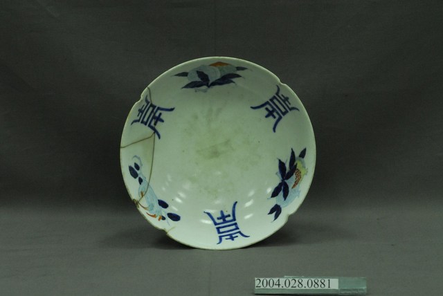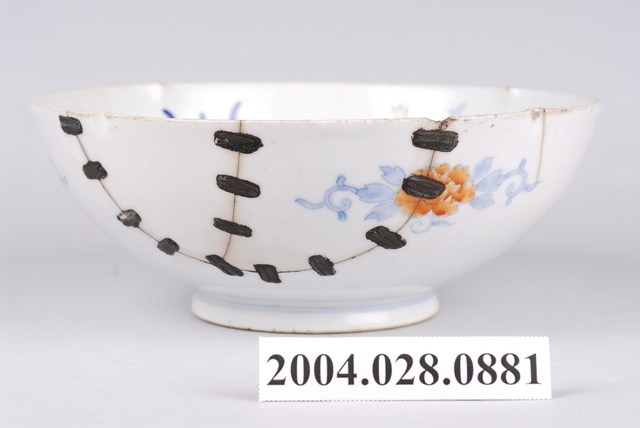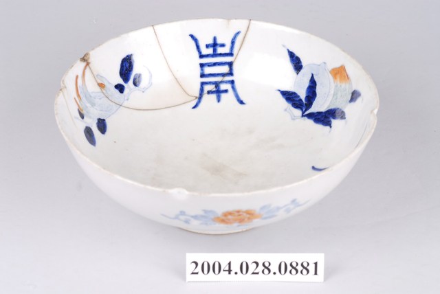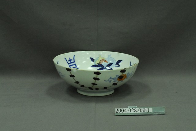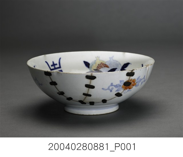 2004.028.0881 彩繪花果壽字紋鋦釘碗