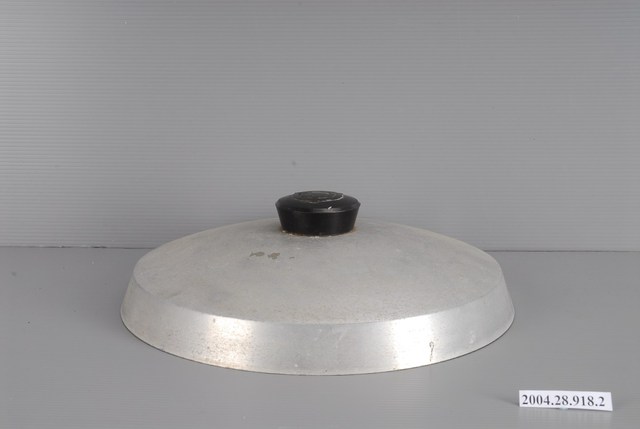 本件鍋蓋為白色大同電鍋部件之2,呈長32.4公分,寬32.4公分,高9.1公分。通身以鋁金屬製作,蓋片呈圓弧形凸起,於蓋身交界處作斜肩外敞轉折。頂面中心處以黑色電木作圓扁形鈕蓋,鈕頂印有陽文為雙環形,內作三等份直線為標誌,為大同公司之商標。