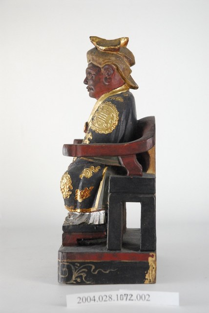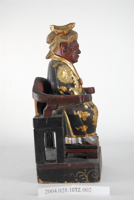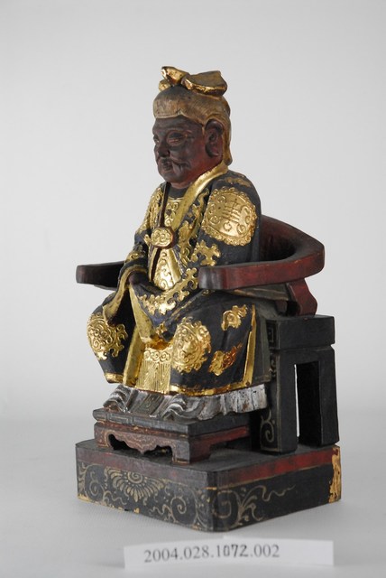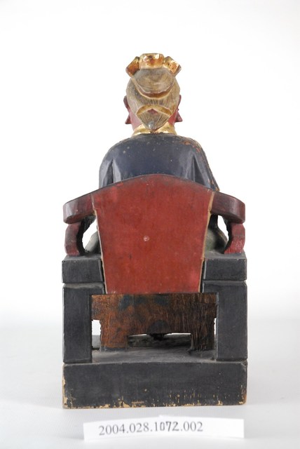 土地婆是土地公的配偶,常與土地公一起供奉。在台灣過去相傳土地婆怕沒人替女兒抬轎,故不保佑人人能發財,所以一般少見單獨供奉土地婆者。本件土地婆神像,梳有髮髻,身穿華服,上衣有壽紋圖,下擺有饕餮紋。雙手合十垂膝,端坐於圈椅上。腳下有腳踏,往下還有底座,腳踏及底座皆有太陽雲彩紋裝飾。保存狀況良好。