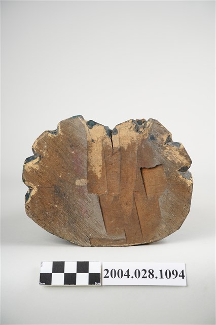 土地公又稱福德正神,部分地區也稱為伯公、后土、社神、土地神等。土地公傳說眾多,一般人生前行善,死後亦有被封為土地公者。土地公不僅掌一境之地,也被視為是文財神。本件土地公,雕刻成頭戴冠帽,身穿朝服的樣式,並以壽字紋作為裝飾,右手略為上舉,應是有持手杖,左手持金元寶,端坐椅上。底座以豎紋裝飾。椅背後黑色漆層略有脫落。