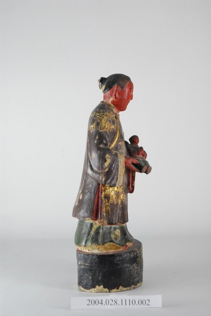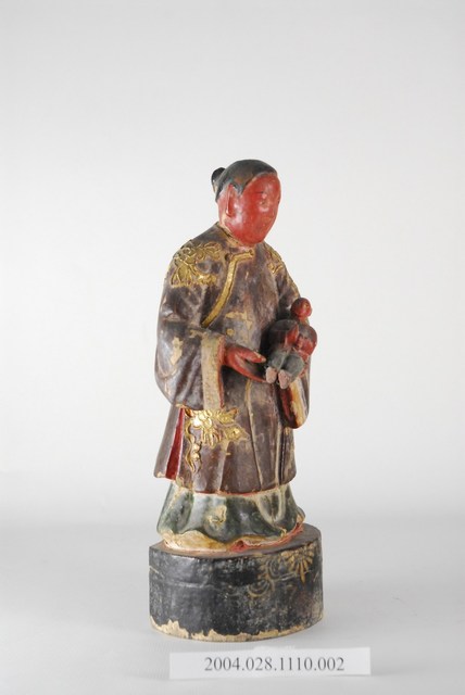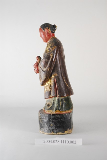 本件為木雕鳥母神像,立姿有圓形底座,紅臉細眉張眼小嘴,親切微笑的神態。雙手捧抱一位孩童。神像上彩,略有褪色。神像略往前傾。鳥母又稱婆姐、婆祖,常見作為生育之神,例如註生娘娘、七星媽、臨水夫人的祀神,是保佑幼童成長的守護神,照顧至16歲為止。