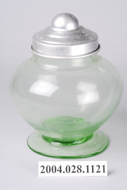 2.玻璃糖果罐是日治至戰後時期常見的民生器具,不管是販賣部或是一般民眾家中均有玻璃糖果罐的蹤跡。玻璃糖果罐通常均有頸短、大口的特色,利於抓取內容物,並採用合金或薄金屬製成的蓋,採直接蓋上密合的方式,方便人們取用。因相較於傳統陶、瓷容器更為輕巧美觀,時常被用於存放餅乾、糖果或醃漬物。