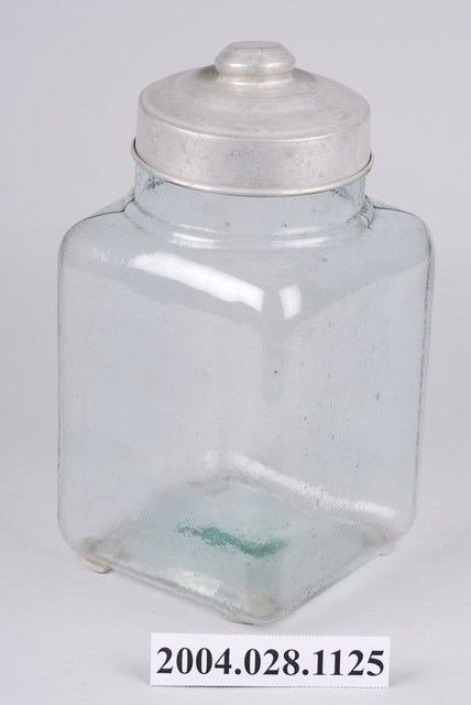2.玻璃糖果罐是日治至戰後時期常見的民生器具,不管是販賣部或是一般民眾家中均有玻璃糖果罐的蹤跡。玻璃糖果罐通常均有頸短、大口的特色,利於抓取內容物,並採用合金或薄金屬製成的蓋,採直接蓋上密合的方式,方便人們取用。玻璃糖果罐因相較於傳統陶、瓷容器更為輕巧美觀,時常被用於存放餅乾、糖果或醃漬物。