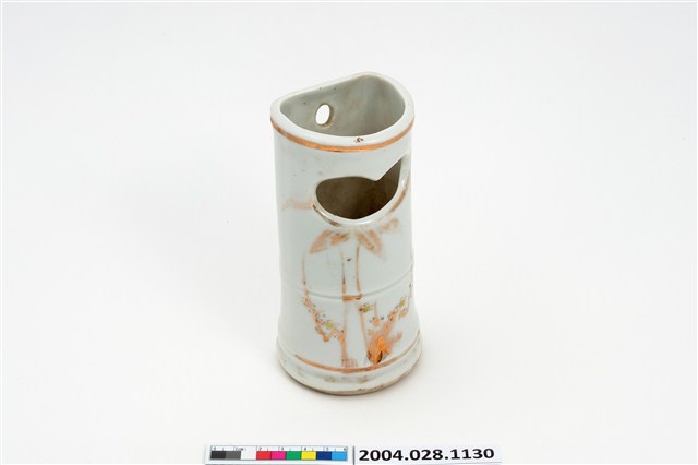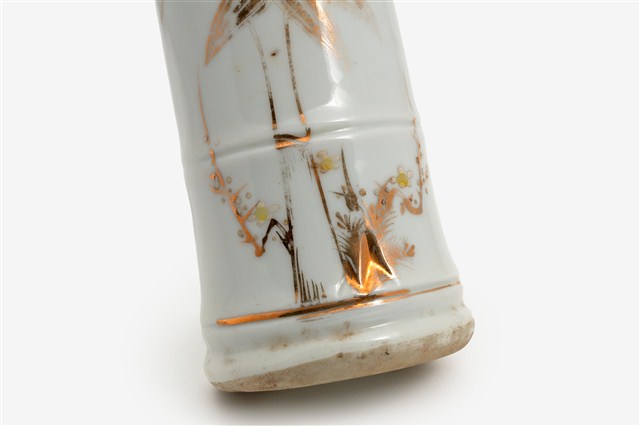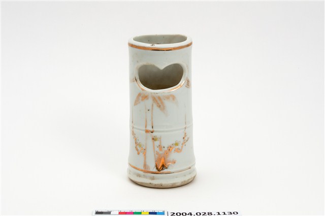 2004.028.1130 白瓷鑲金邊竹節筷筒