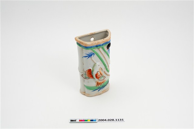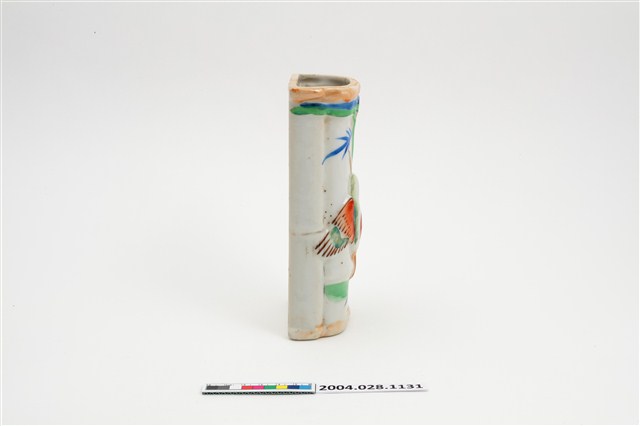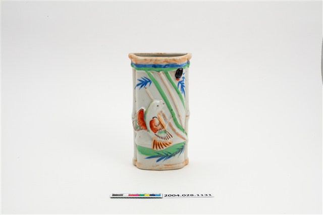2004.028.1131 白瓷半圓形小鳥紋彩繪筷筒